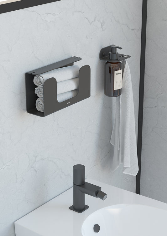 SONIA -QUICK TOILET ROLL HOLDER & SHELF BLACK(D)