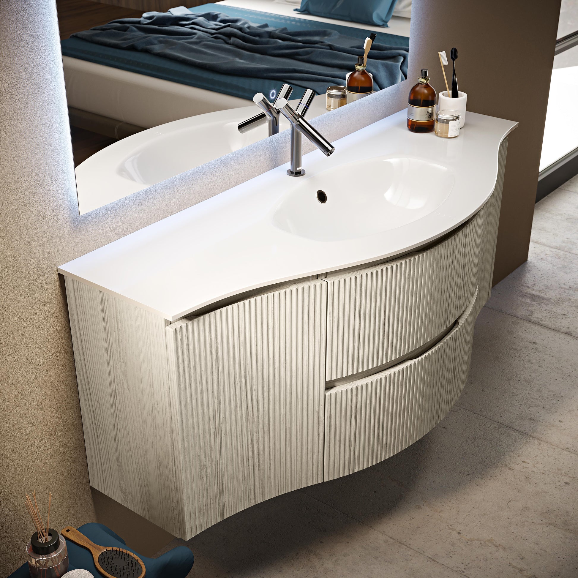 BH Olimpia Side Cabinet 13" 1 door Fluted Fronts