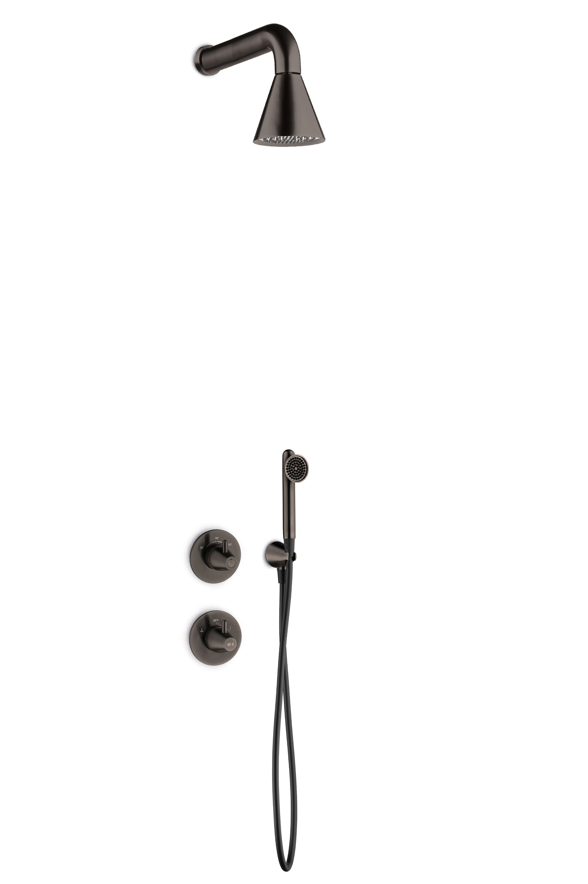 JEE-O Cone Shower Set 02 Wall SS with shower, TH mixer, diverter and wall handshower, gun metal