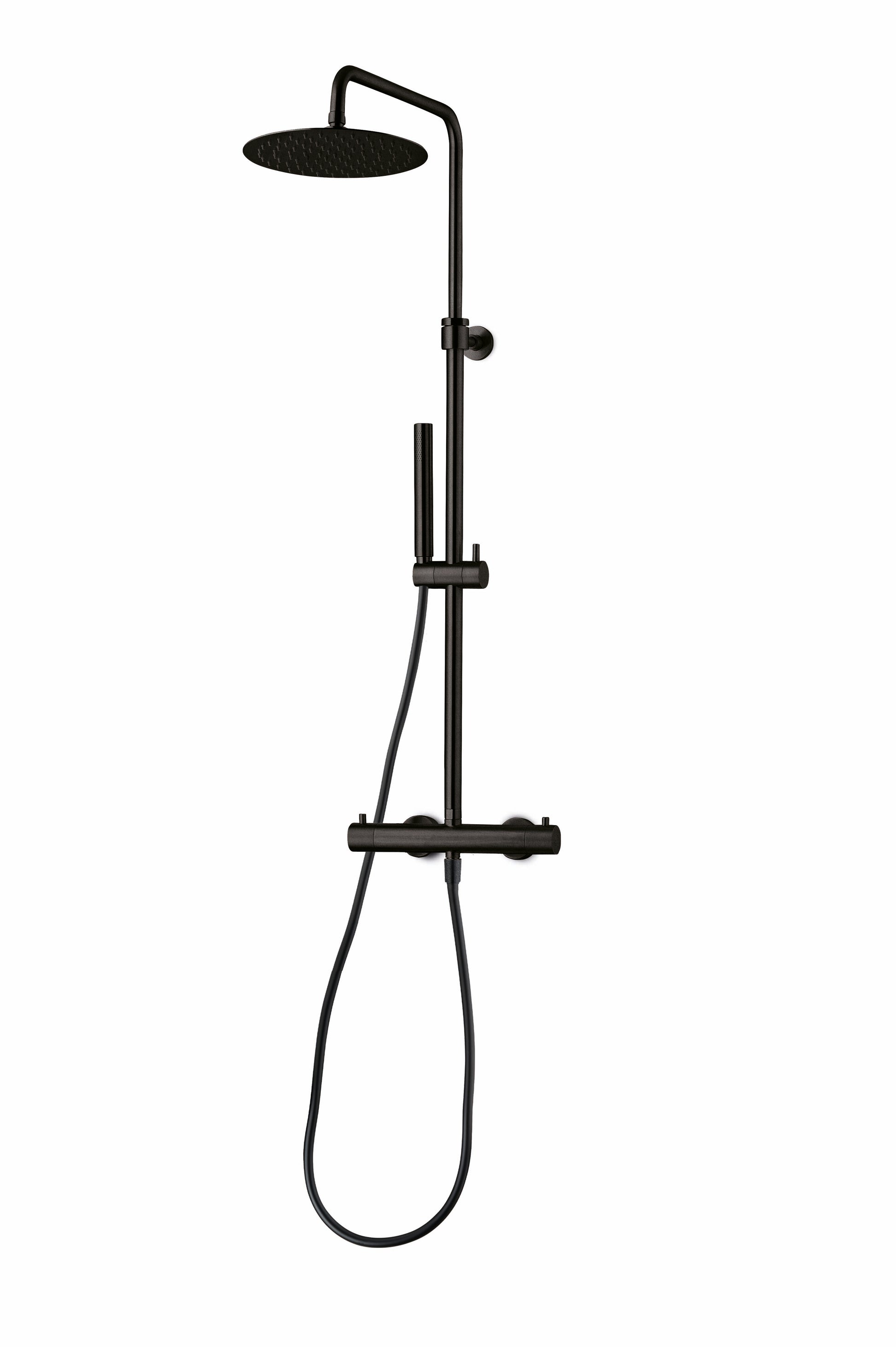 JEE-O Slimline Shower Set Stainless Steel with TH, Hand Shower and sliding bar, Structured Black