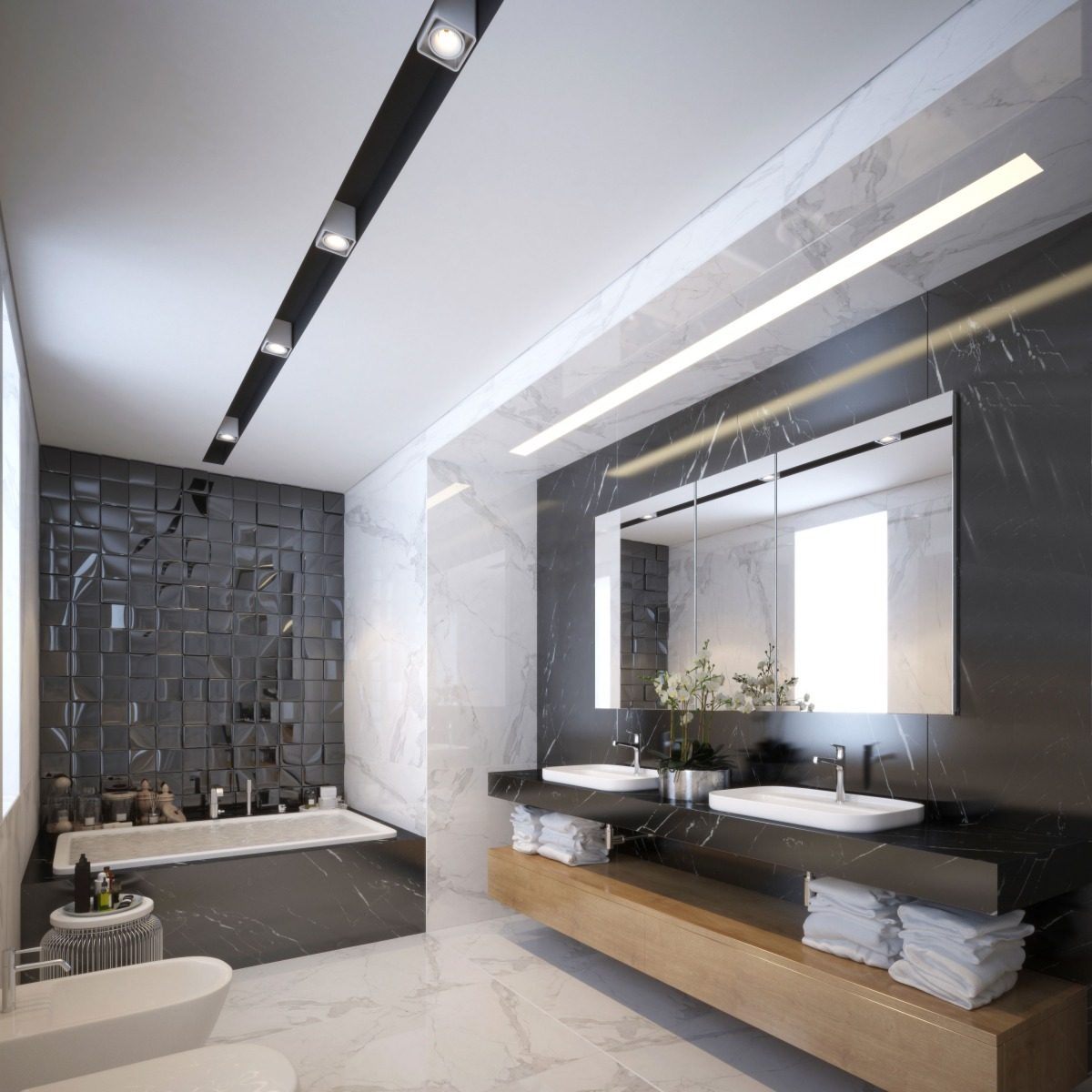 Light & Outlets: *Dimmable LED Vertical Lighting in 3000K & 4000K